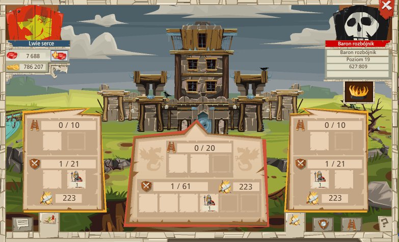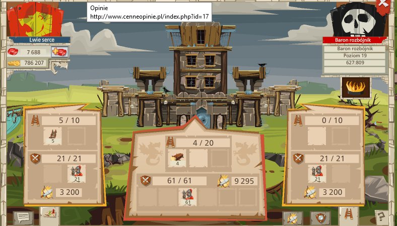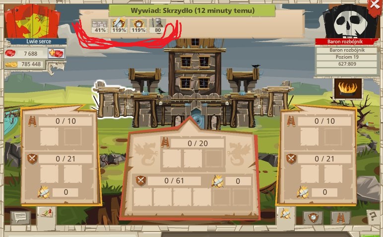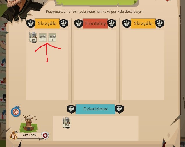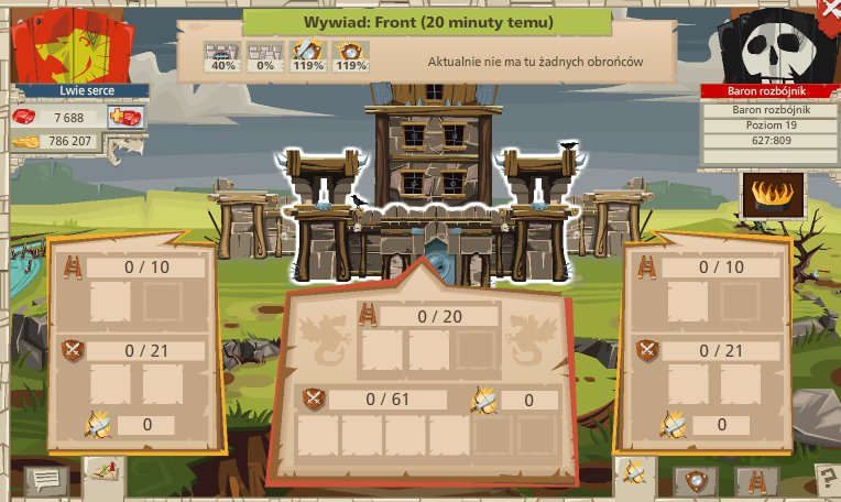 Tutaj widzimy obronę bramy 40 % - czyli dajemy 4 tarany (1 taran usuwa 10 % obrony bramy zamku)